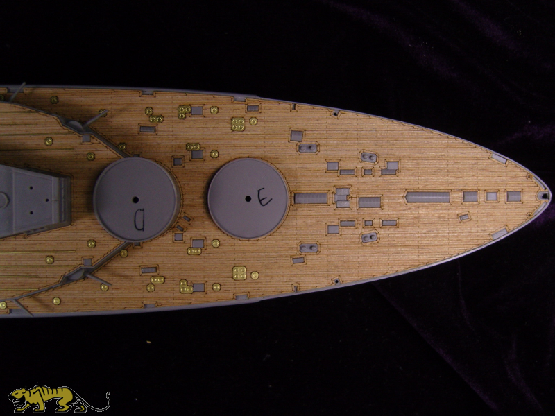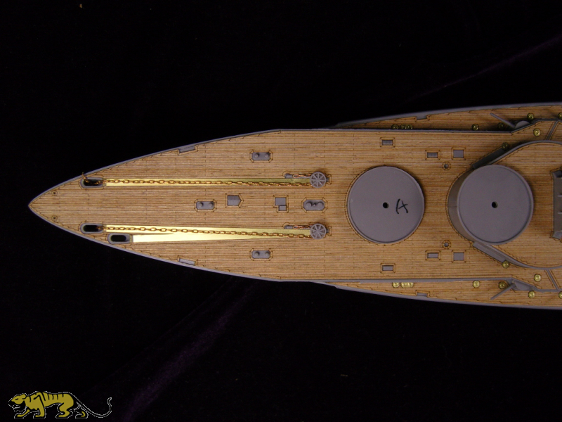 Komplettes Holzdeck inkl. Fotoätzteilen für die SMS Großer Kurfürst im Maßstab 1:350 von ICM (Artikel-Nr. S002). Inklusive Fotoäzteilen.