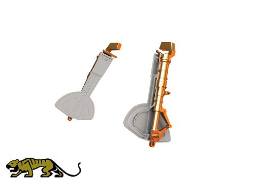 Messing Fahrwerk für die Messerschmitt Bf109 G-6 im Maßstab 1:32 von Revell (04665). Das Set enthält zwei Messing-Fahrwerksbeine und zwei Abdeckungen aus Resin.