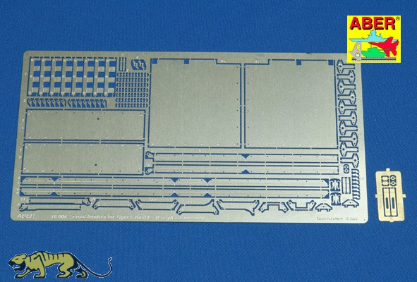 1/16 Scale Front Fenders Photo-Etched Parts Set for the Tamiya Tiger I Ausf. E – Early and Late Version. The set includes two photo-etched plates. It is designed for the Tamiya Tiger I but is also suitable for other 1/16 scale Tiger I early models from other manufacturers, such as Takom / AHHQ (Andy's Hobby Headquarters), Heng Long, and Trumpeter.