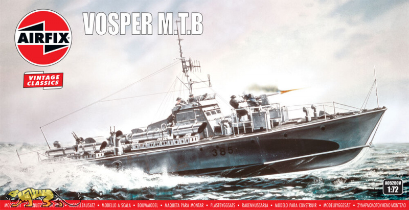 1/72 scale plastic model kit of a british Vosper MTB (Motor Torpedo Boat) - Vintage Classic.