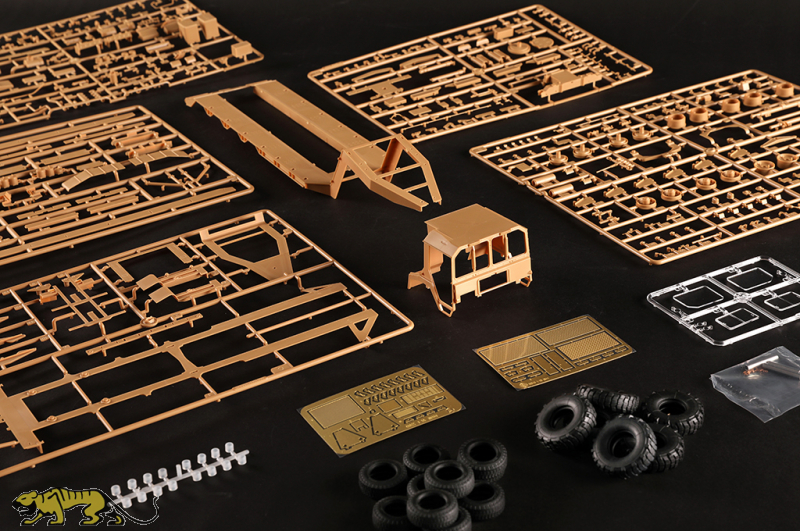 About the model: - 1/35 scale plastic model assembly kit - Highly detailed model - Length: 550,3mm - Width: 89mm - Total parts: 780+ - Photo-etched parts included - Metal parts included - Slide moulded cabin - Detailed drive train, engine, suspension etc. - Hollow rubber tires with realistic pattern and sidewall details