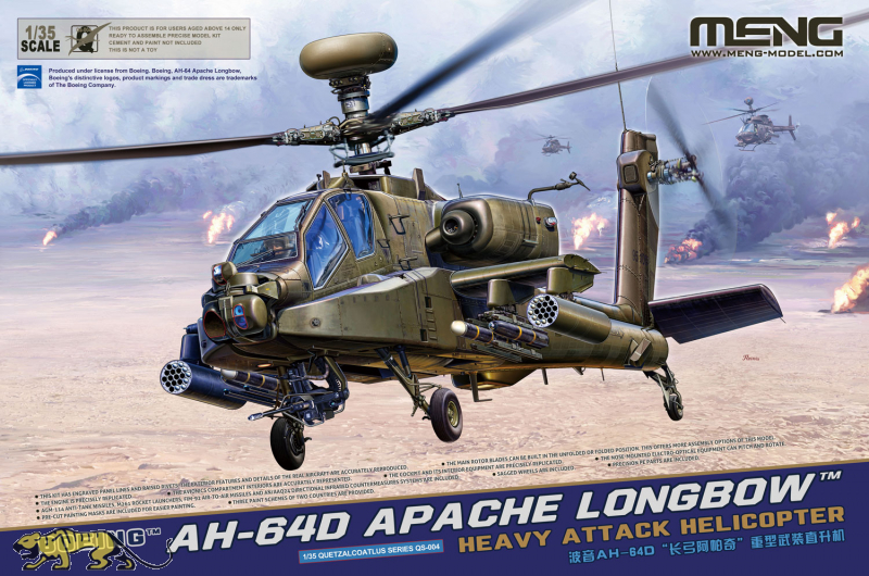 1/35 scale plastic model kit of the Boeing AH-64D Apache Longbow - Heavy Attack Helicopter.