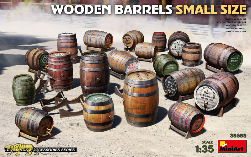 1/35 scale plastic model kit - Wooden barrels - small size.