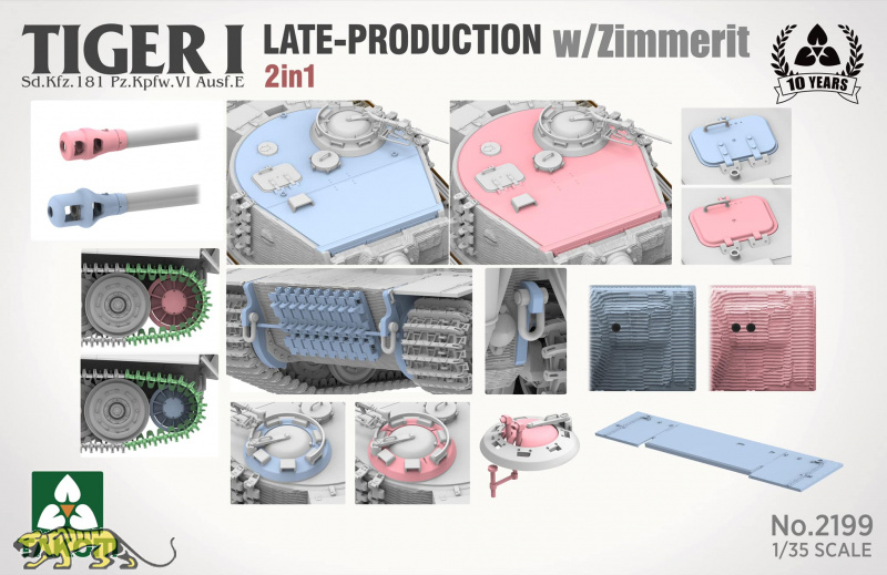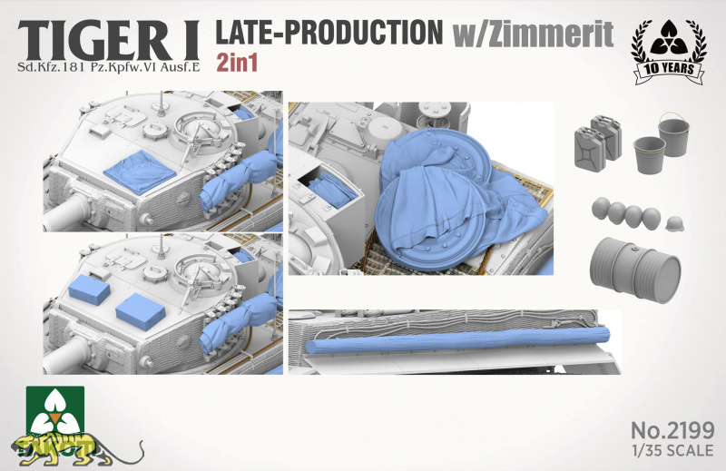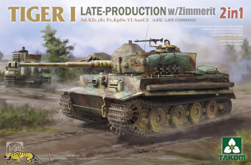 1/35 scale plastic model kit of the german Panzerkampfwagen Tiger Ausf. E - Sd.Kfz. 181 - late production with Zimmerit - 2in1.
