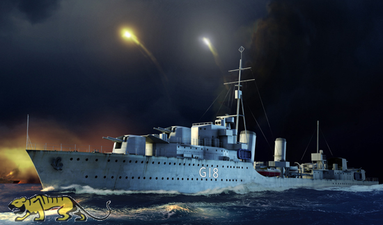 1/350 scale plastic Model Kit of the Tribal-Class Destroyer HMS Zulu.