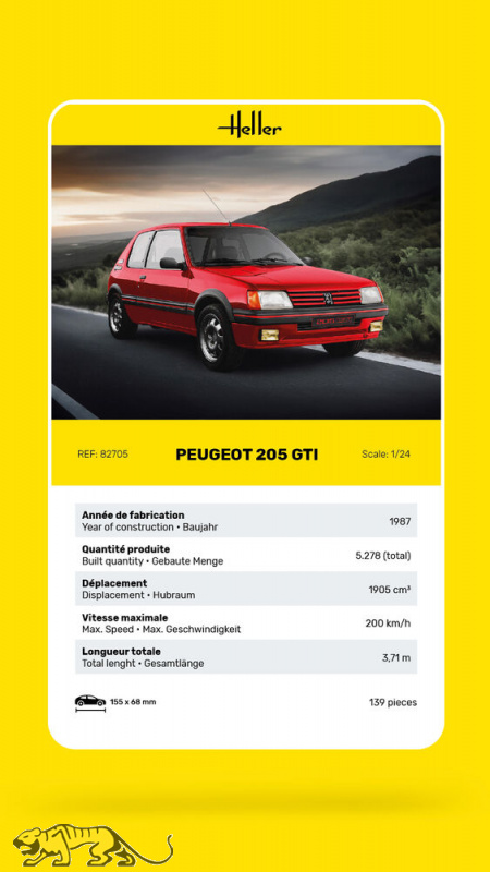 Plastikmodellbausatz im Maßstab 1:24 des Peugeot 205 GTI 1.9.