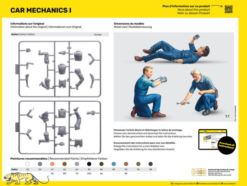 Plastikmodellbausatz im Maßstab 1:24 - Figuren-Set - Car Mechanics I / Kfz / Auto Mechaniker Set I. Das Set enthält drei ungebaute und unbemalte Figuren.