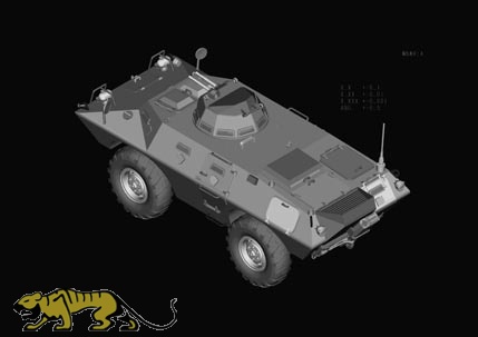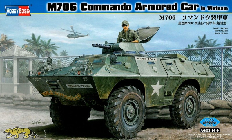 Plastikmodellbausatz im Maßstab 1:35 des M706 in Vietnam Ausführung. Der Bausatz enthält Fotoätzteile und Gummireifen.