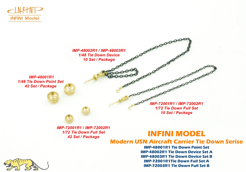 TIe Down Points & Device Set A - Das Set enthält 42 Tie Down Points sowie Verzurrungen / Sicherungen für moderene US Flugzeugträger. Set A ist passend für F-14, F/A-18, E-2C, EA-6B(A-6), S-3.
