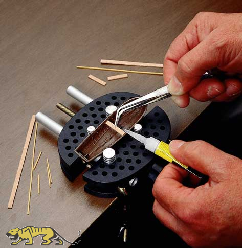 Dieser praktische Werkstückhalter kann durch seine Stifteinstellung Teile mit unterschiedlichsten Formen zum Bearbeiten festhalten. Der Halter wird mit zwei Tischklemmen an Ihrer Arbeitsplatte gehalten.