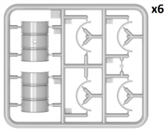 Plastikmodellbausatz im Maßstab 1:35 - Figurenset - Deutsche Soldaten mit Fässern (German Soldiers with Fule Drums). Das Set enthält fünf ungebaute und unbemalte Figuren sowie sechs 200L Kraftstoff- bzw. Benzinfässer.