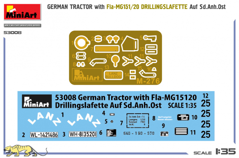 Plastikmodellbausatz im Maßstab 1:35 eines deutschen Traktor mit Fla-MG 151/20 montiert auf Sonderanhänger Ost.