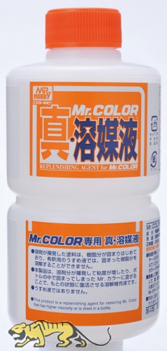 Mr. Replenishing Agent for Mr. Color - um eingetrocknete oder angedickte Mr. Color Farben wieder verwendbar zu machen. Nicht nutzbar mit Mr. Metal Color oder Mr. Hobby Color Farben!