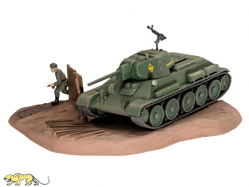Über das Modell: - Modellbausatz im Maßstab 1:76 - Detailliertes Modell - Länge: 8,1cm - Einzelteile: 76 - Diorama-Platte enthalten - Eine russische Soldatenfigur enthalten - Gummiketten - Ehemalige Matchbox Form - Markierungen für zwei Versionen