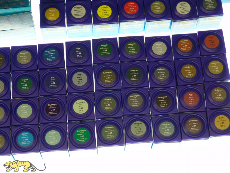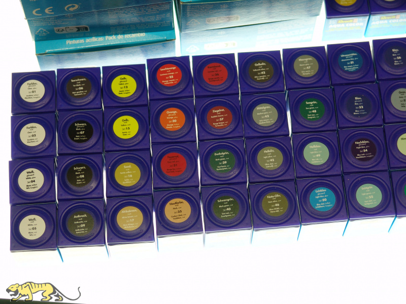 Geliefert wird das Set in zwei stabilen DIN A4 Aufbewahrungsboxen, die zusätzlich Platz für weitere Aqua Color Farben bieten.