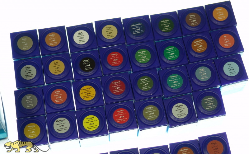 Jede Farbe liegt einmal im praktischen 18 ml-Becher bei.