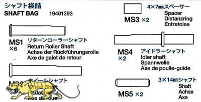 Achsen Beutel (MS1 x6, MS2 x12, MS3 x2, MS4 x2, MS5 x2) für Tamiya KV-1 / KV-2 (56028, 56030) 1:16