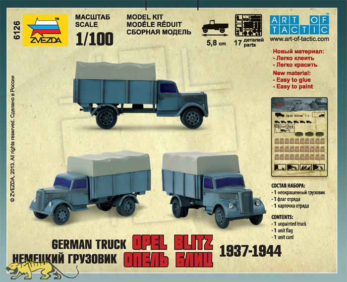 Plastikmodellbausatz im Maßstab 1:100 eines deutschen 3t Militär-LKW - Opel Blitz - 1937 - 1944.